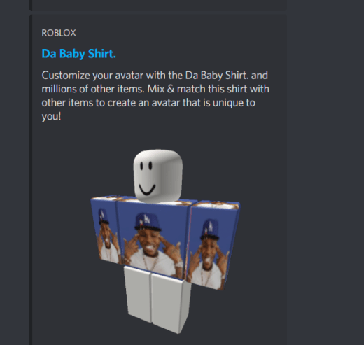 If you find this site serviceableness, please support us by sharing this posts to your preference social media accounts like Facebook, Instagram and so on or you can also Download this blog page with the title Dababy Roblox Shirt by using Ctrl + D for devices a laptop with a Windows operating system or Command + D for laptops with an Apple operating system. If you use a smartphone, you can also use the drawer menu of the browser you are using. Whether it's a Windows, Mac, iOS or Android operating system, you will still be able to bookmark this site.